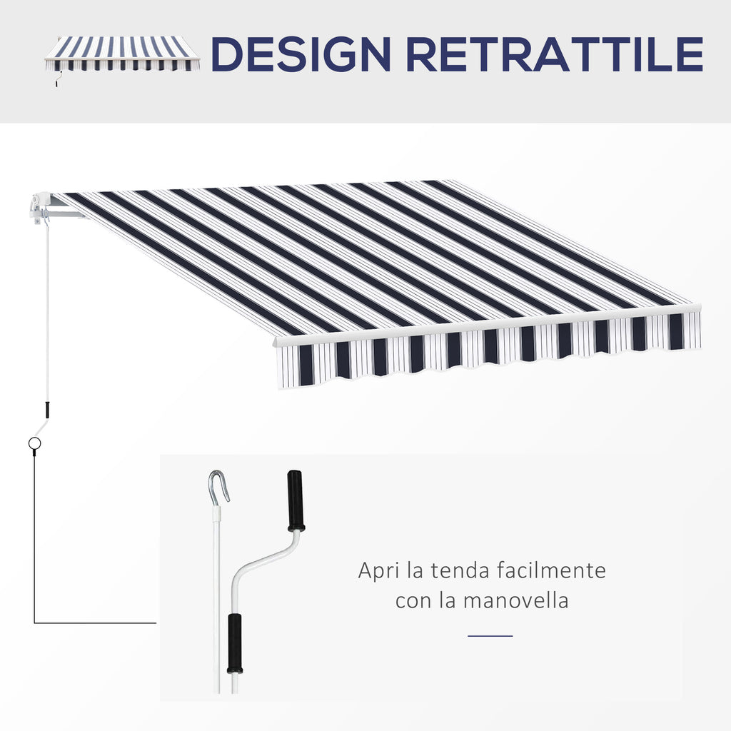Auvent manuel à enroulement mural rayé bleu et blanc 2,5x2m