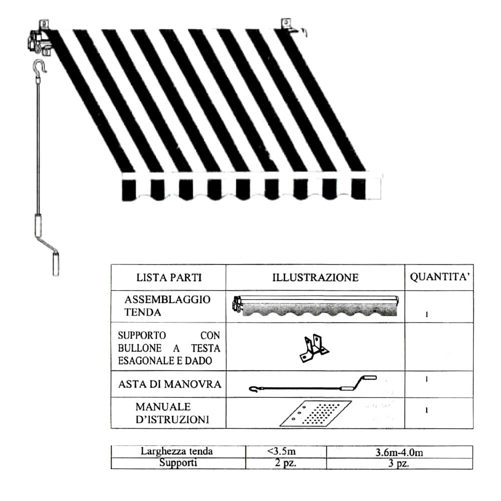 Store à bras rétractables, structure en aluminium et tissu polyester 280 g/m2.