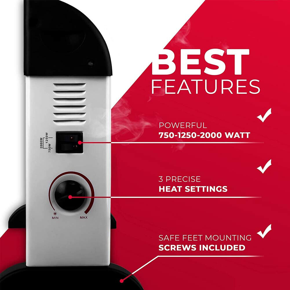 - 1 x Termoconvettore Stufa Elettrica 3 Potenze 2000W Termostato Regolabile Bianco