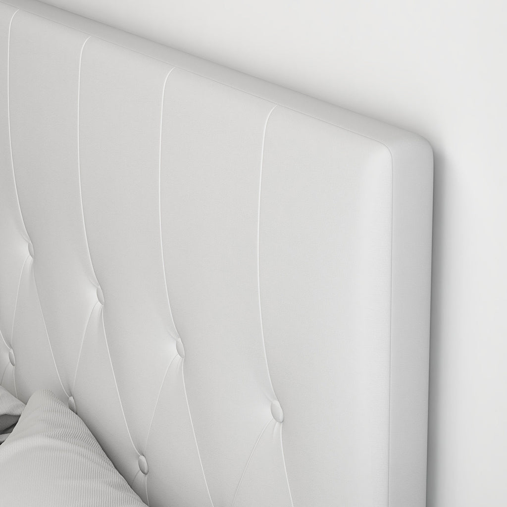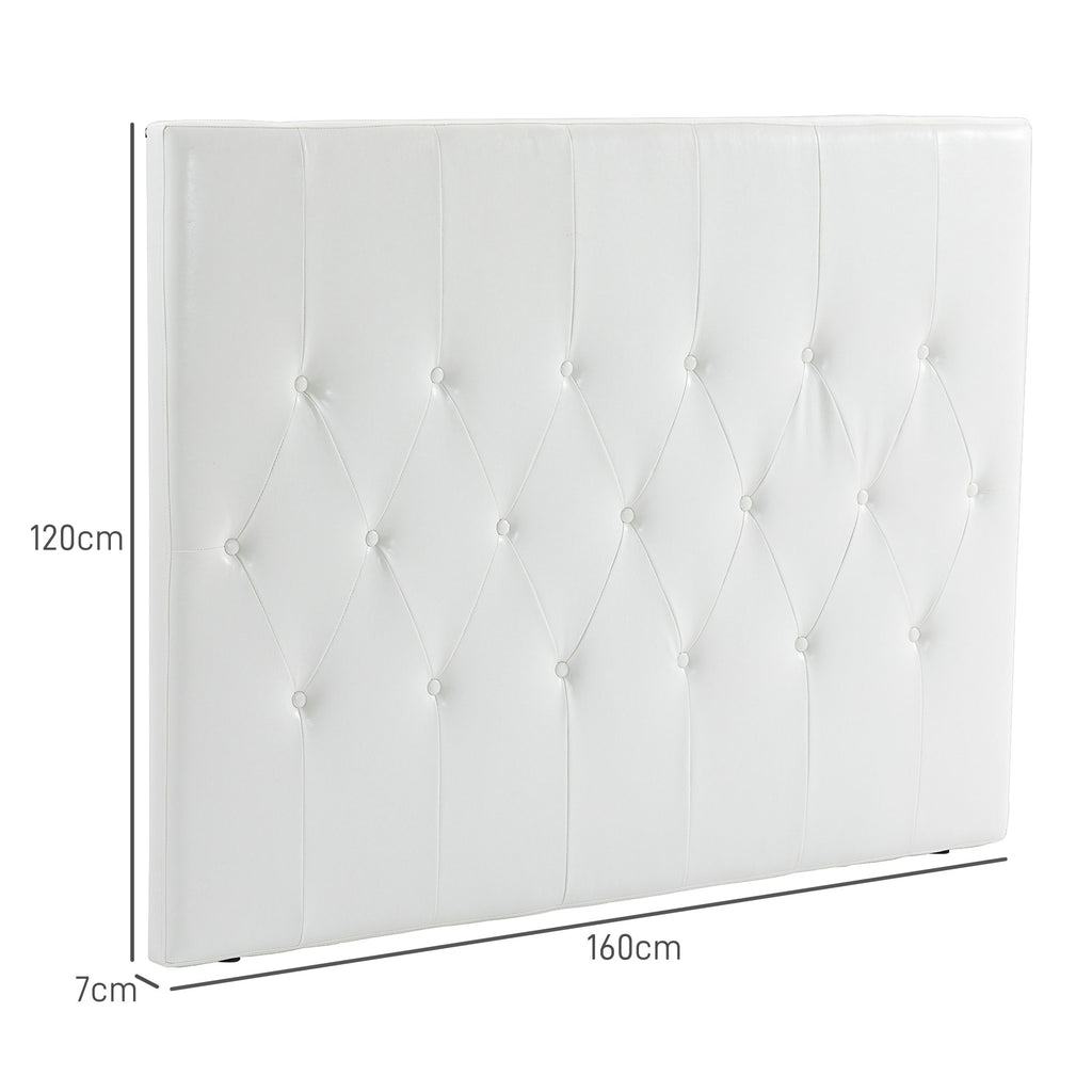 Testiera Letto Matrimoniale Imbottita Design a Bottoni 160x7x120 cm in Pelle PU Bianca