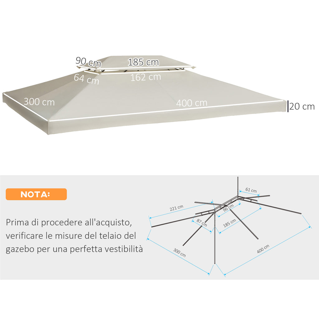 Toit de Rechange Imperméable pour Tonnelle de Jardin Double Toit 3x4m