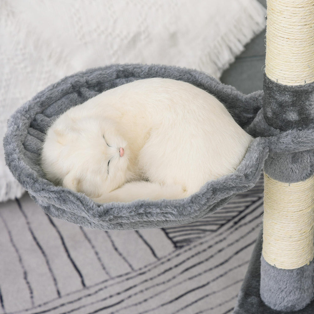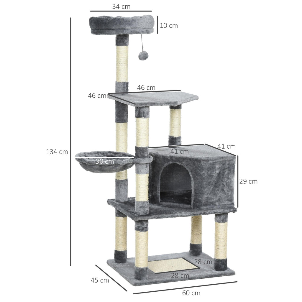 Arbre à chat avec niche et panier suspendu pour chat 60x45x134 cm en peluche sisal gris