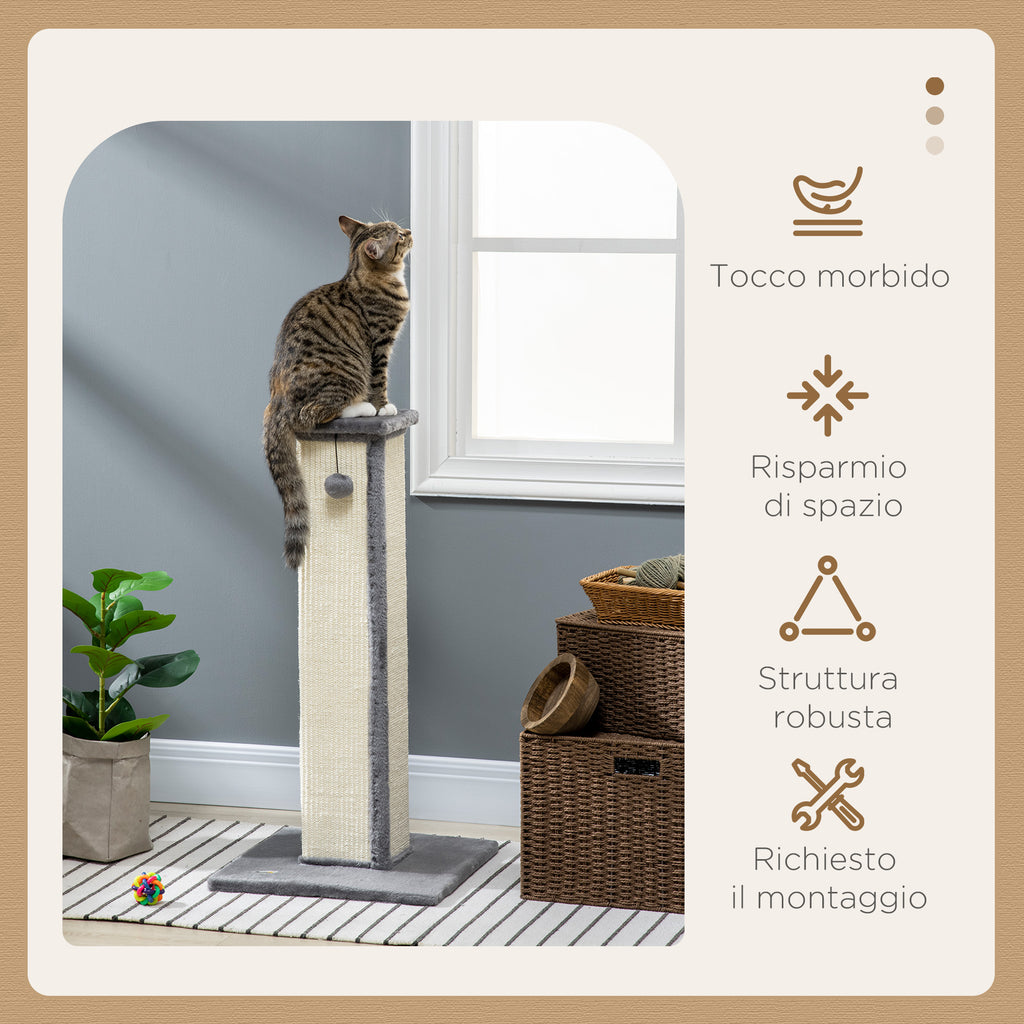 Tiragraffi per Gatti 41x41x81 cm Palo in Sisal e Pallina da Gioco Grigio