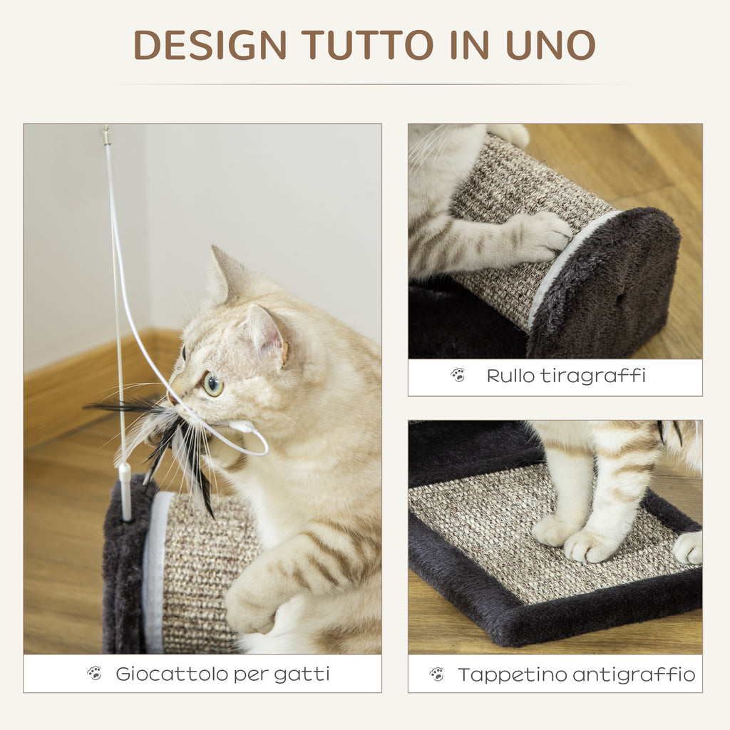 - POLYVALENT : Ce produit peut être utilisé comme griffoir ou comme lit. Il est également équipé d'un jouet en plumes pour permettre à votre félin de s'amuser et de se défouler