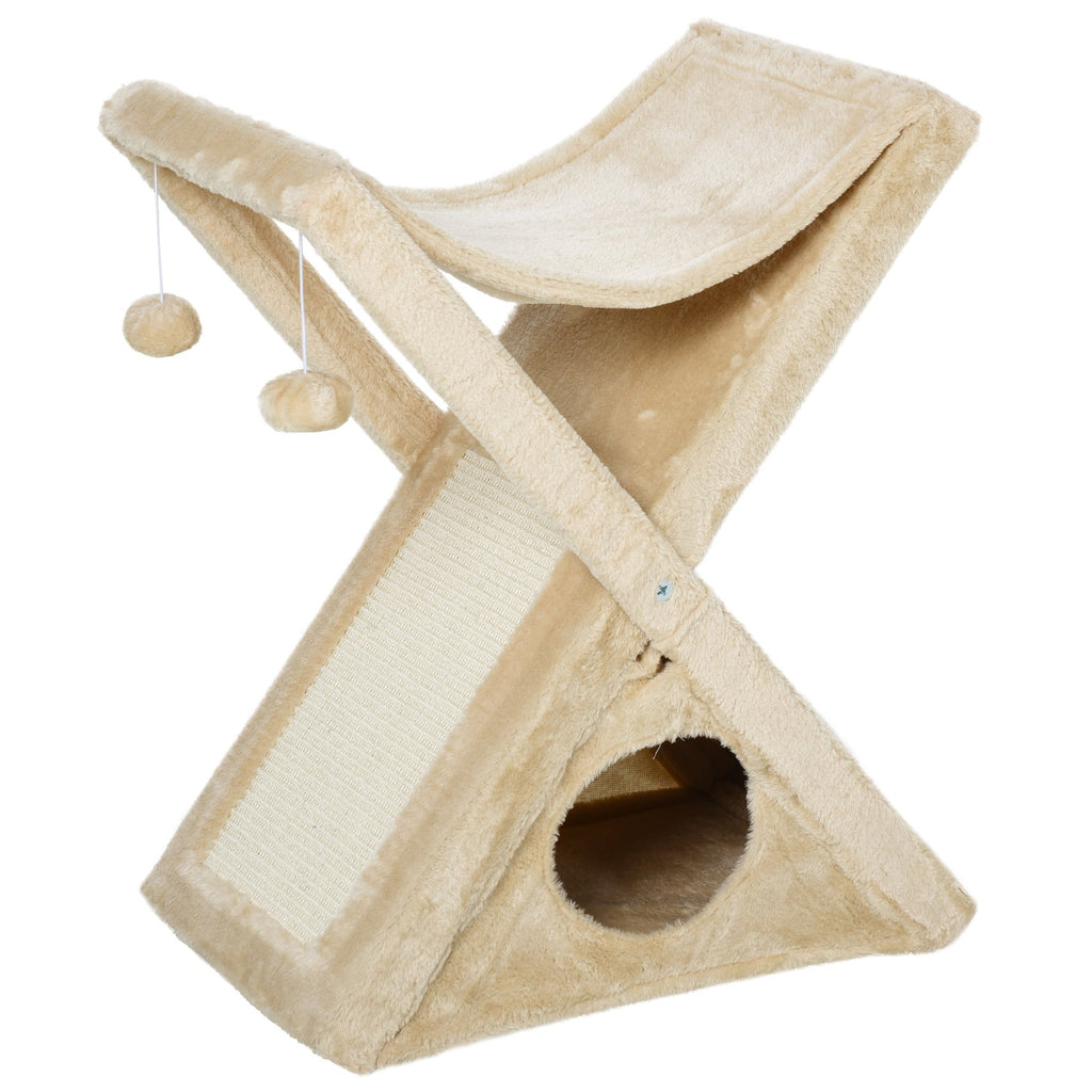 - MULTIFONCTION : Ce petit griffoir est équipé d'une maison pour chat, d'un hamac confortable et de 2 jouets suspendus. Une petite salle de sport avec espace détente !