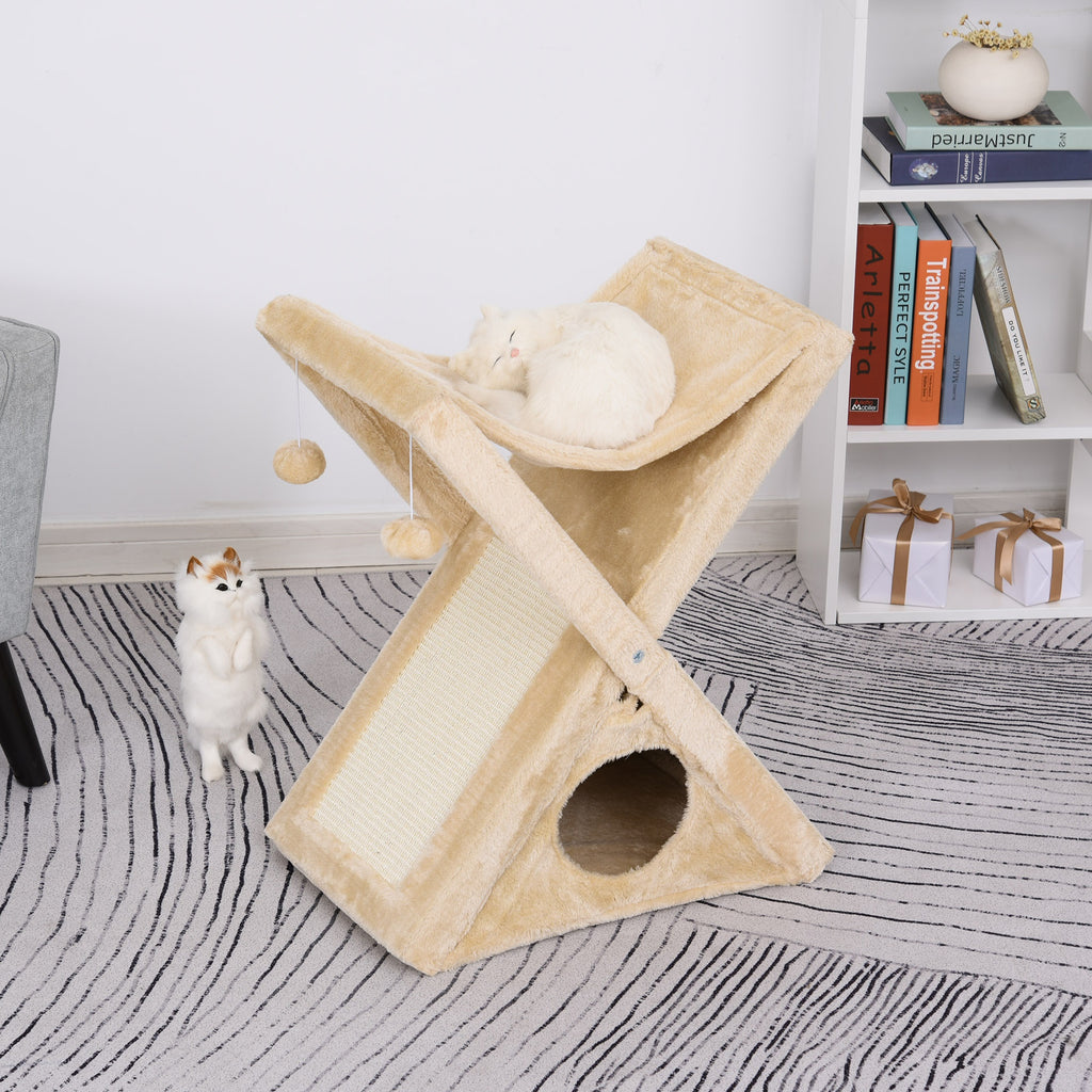 - DIMENSIONS : Dimensions hors tout : 54,5L x 32W x 65Hcm. Taille pliée : 80L x 36W x 13Hcm. Maisonnette : 54,5 L x 32 L x 30 Hcm. Taille du trou : Ø18cm. Hamac : 45L x 32Pcm. Convient aux petits chats pesant moins de 4 kg.