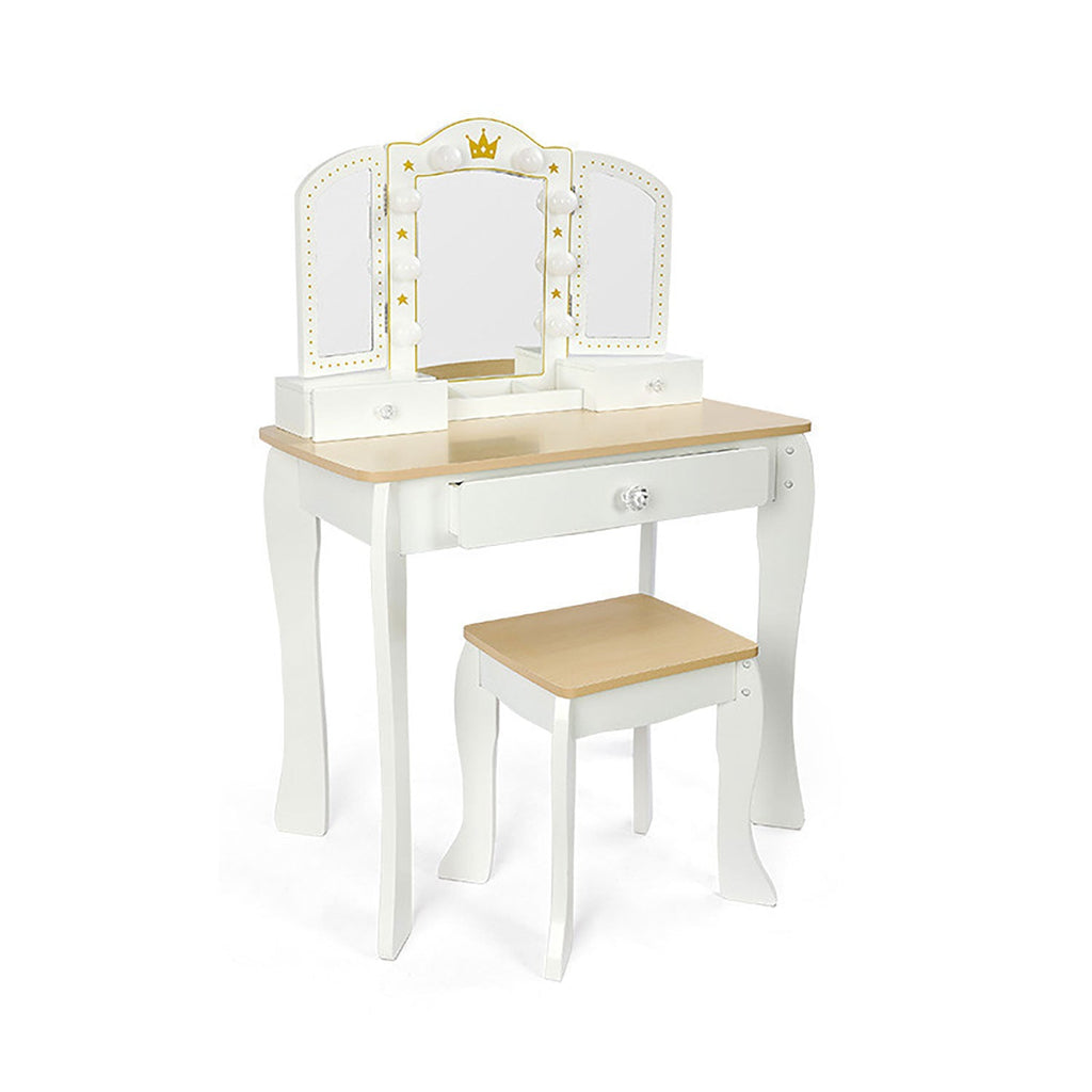 Toeletta Trucco per Bambine Consolle con Specchio e Sgabello in Legno