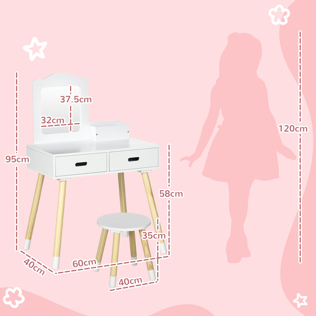 Toeletta Trucco per Bambine Consolle e Sgabello Bianco e Colore Legno