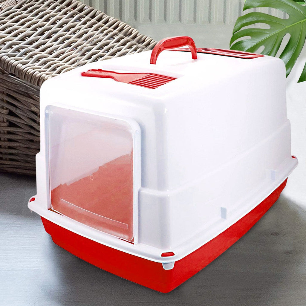 Bac à litière pour chat fermé avec porte abattante charbon actif 54x39x39cm Rouge