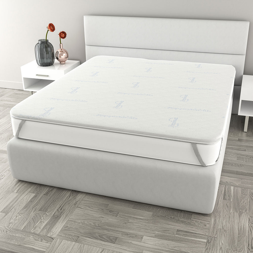 Topper Memory Con Fodera in Poliestere e Bioceramica Bianco Varie Misure