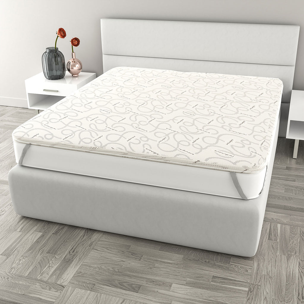 Topper Memory sfoderabile, con fodera contenente fibra Cashmere. Articolo provvisto di 4 robusti elastici per ancoraggio al materasso. Imbottitura in memory studiata per garantire il massimo del comfort. Altezza topper: 5cm. Il tessuto utilizzato è costituito dal 3% di fibra di Cashmere. La fibra di Cashmere è particolarmente conosciuta per la sua morbidezza, il contatto con la pelle risulta infatti essere soffice e delicato. Questa fibra è conosciuta anche per la sua capacità di mantenere una temperatura costante, grazie alla proprietà termoregolatrice che lo rende adatto sia alla stagione fredda che a quella calda. L'articolo viene compresso, suggeriamo quindi di aprire il pacco e togliere il prodotto, facendolo espandere per 24-48 ore in modo da godersi un ottimo sonno ristoratore. Articolo Made in Italy.
