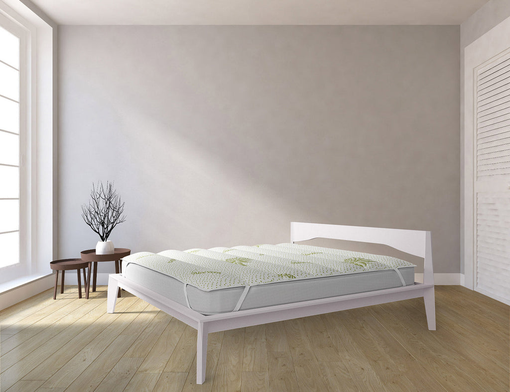 Surmatelas matelassé rembourré avec élastique Aloe Vera Blanc Différentes tailles