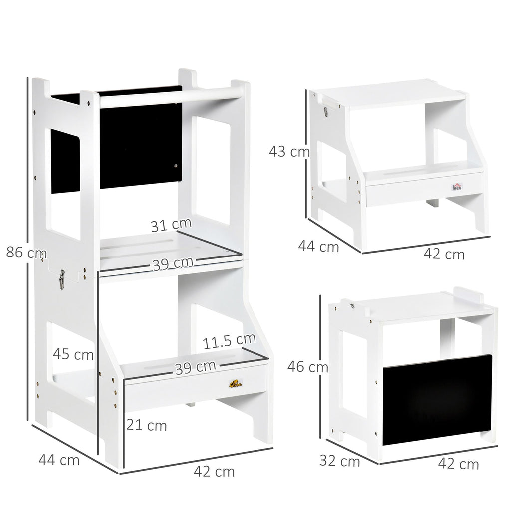 Tour d'escalier Montessori pour enfants 42x44x86 cm avec tabouret et tableau blanc