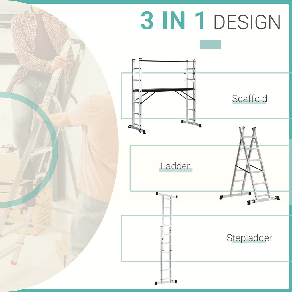 Echafaudage 3 en 1 à Hauteur Réglable Max 150 Kg en Alliage d'Aluminium