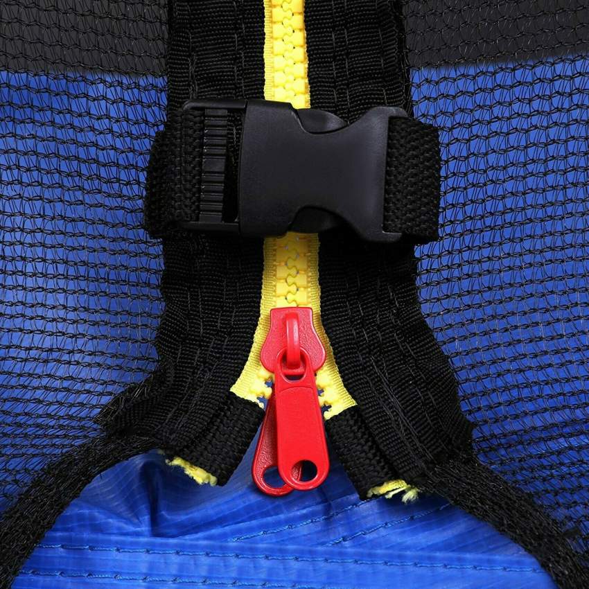 En ce qui concerne l'ancrage au sol, le trampoline est équipé de 4 pieds en double W et de 8 supports simples : la somme de ces supports rend le trampoline quasiment impossible à renverser, augmentant encore le taux de sécurité global.