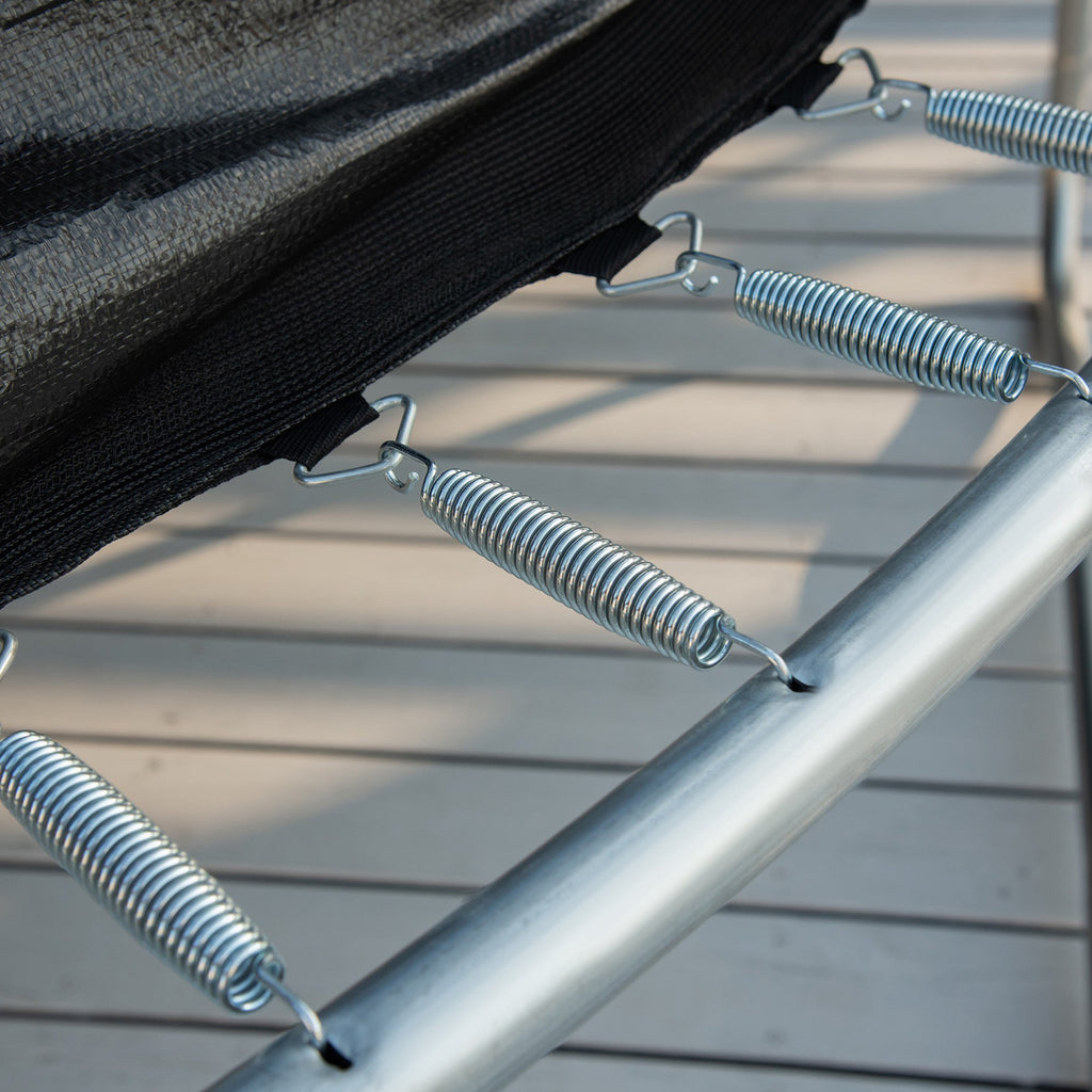 - Matériaux résistants à la rouille, aux UV et à la pluie, ce qui rend le trampoline adapté à une utilisation intérieure et extérieure