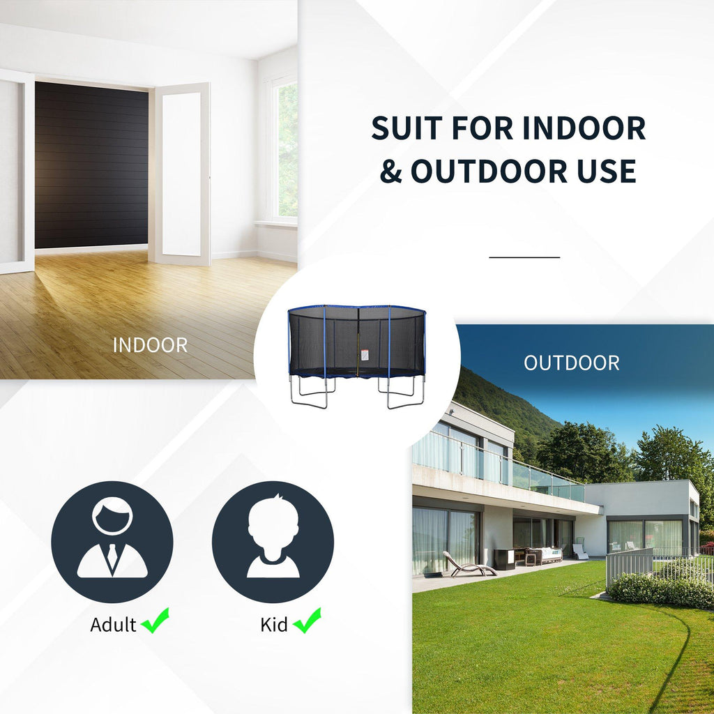 - SÛR : Le trampoline est doté d'un filet de sécurité sur tout le périmètre, de bords rembourrés et de ressorts recouverts de mousse EPE pour éviter les blessures. Le filet possède une entrée zippée et un verrou de sécurité pour permettre à vos enfants de jouer sans soucis.