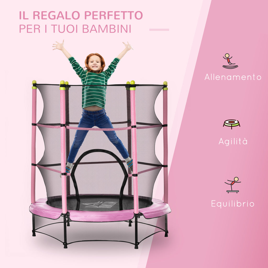 Trampoline Trampoline pour Enfants Ø140x158 cm en Acier Rose et Noir