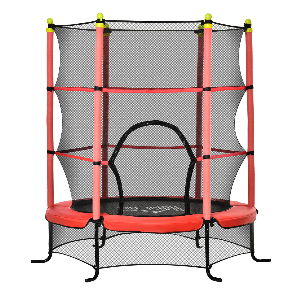 Trampoline Trampoline pour enfants Ø163x163 cm avec filet de sécurité et cordons élastiques Rouge