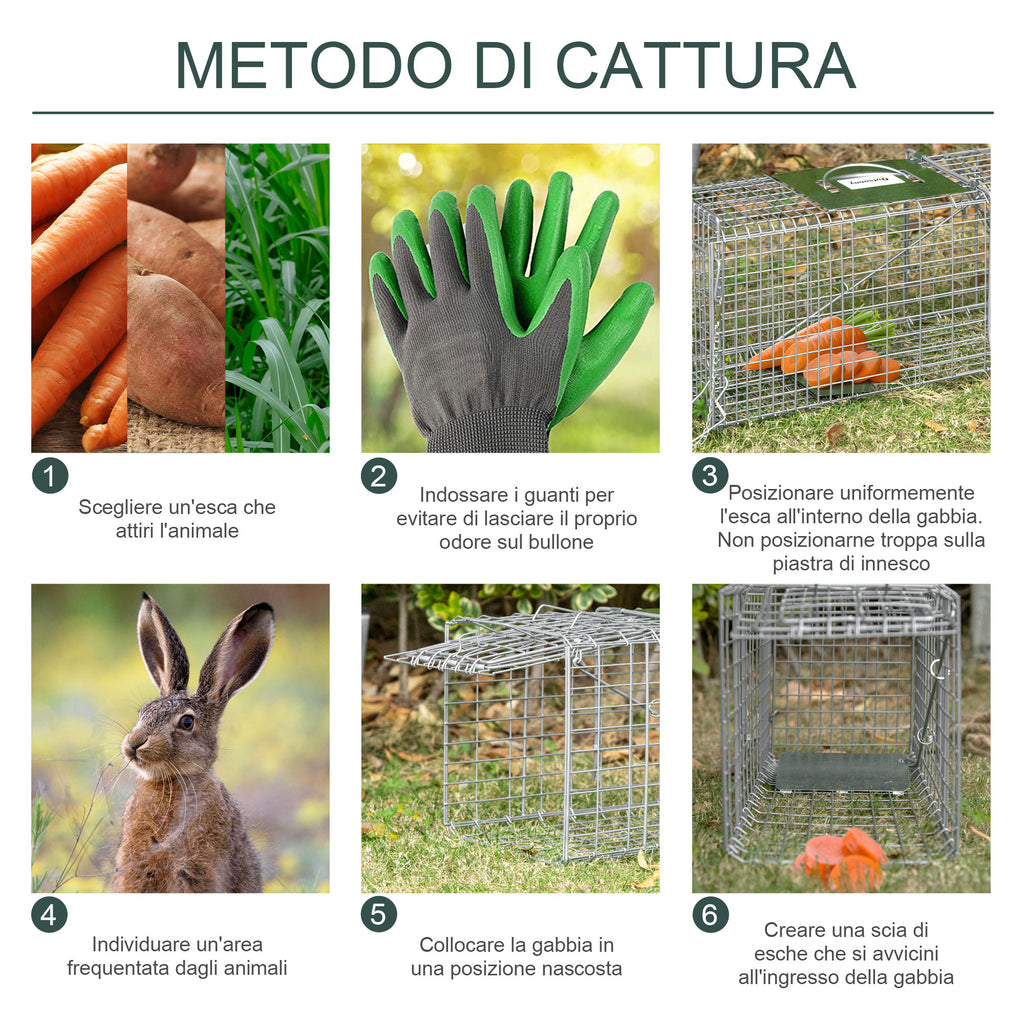 - GABBIA SICURA: Questa gabbia per animali consente di prendere in totale sicurezza gli animali selvatici senza fargli male, così potrai liberarli in zone più adatte a loro. Ideale per conigli, donnole, ecc