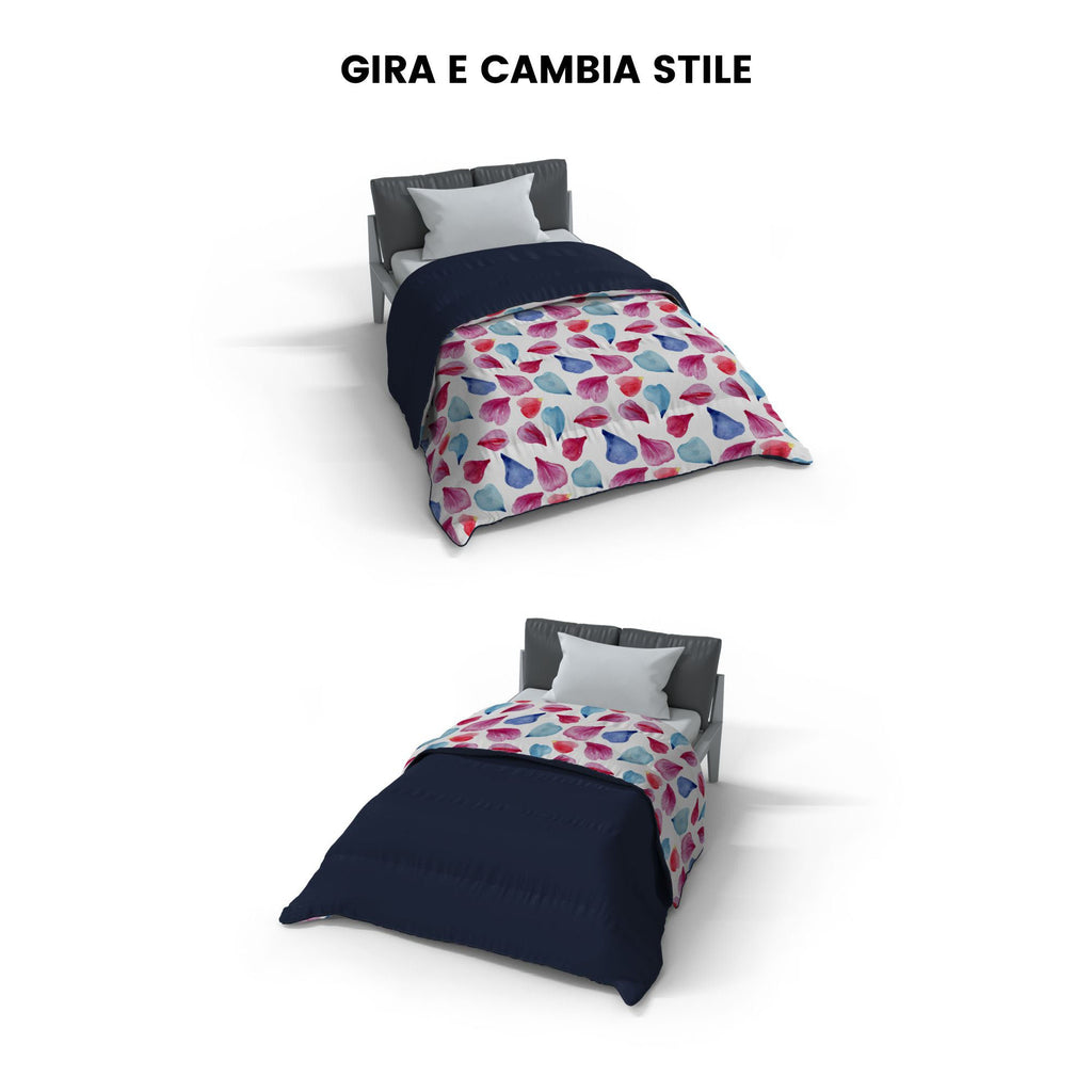 Couette d'hiver imprimée bicolore, double face. Rembourrage 300 grammes, Made in Italy avec certification Oeko tex qui garantit le respect de la nature et l'absence totale de substances nocives pendant tout le processus de production.