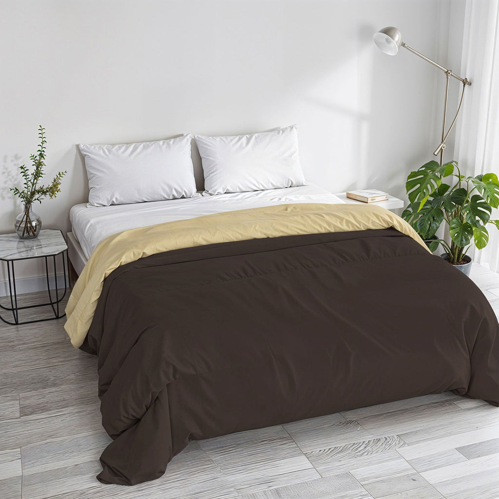 Trapunta Invernale Matrimoniale Tinta Unita in Microfibra 200gr Marrone Panna