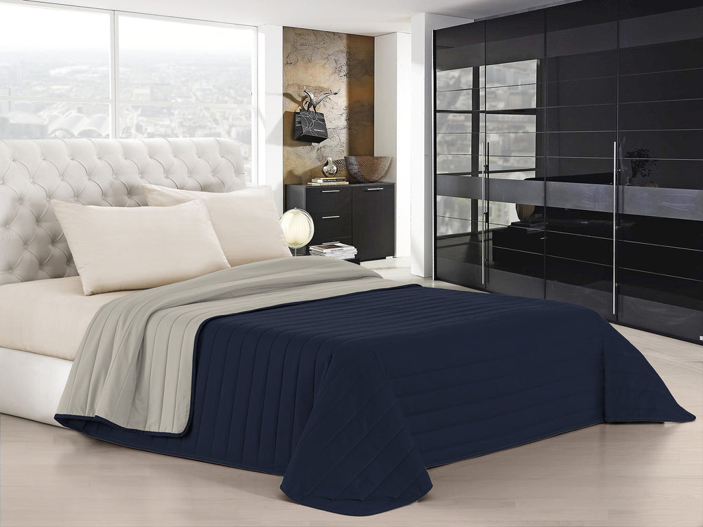 Couette Double Face 100gr en Microfibre Bleu Foncé/Gris Clair