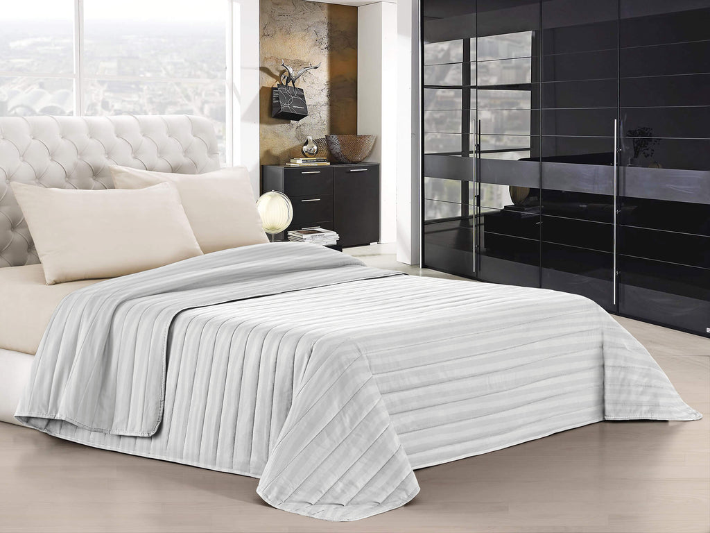 Couvre-lit matelassé doux avec un poids d'été de 100 grammes en satin de polyester. Le rembourrage léger est idéal pour le printemps et l'été, produit Made in Italy.