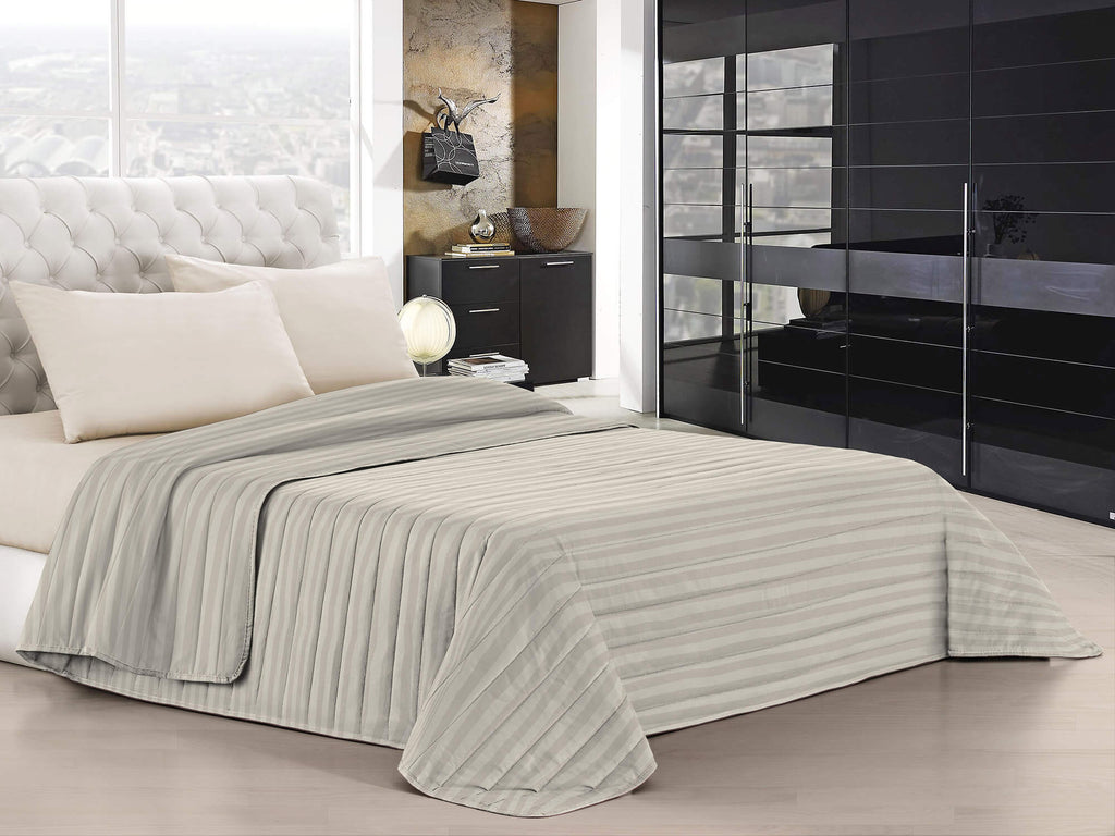 Couvre-lit matelassé doux avec un poids d'été de 100 grammes en satin de polyester. Le rembourrage léger est idéal pour le printemps et l'été, produit Made in Italy.