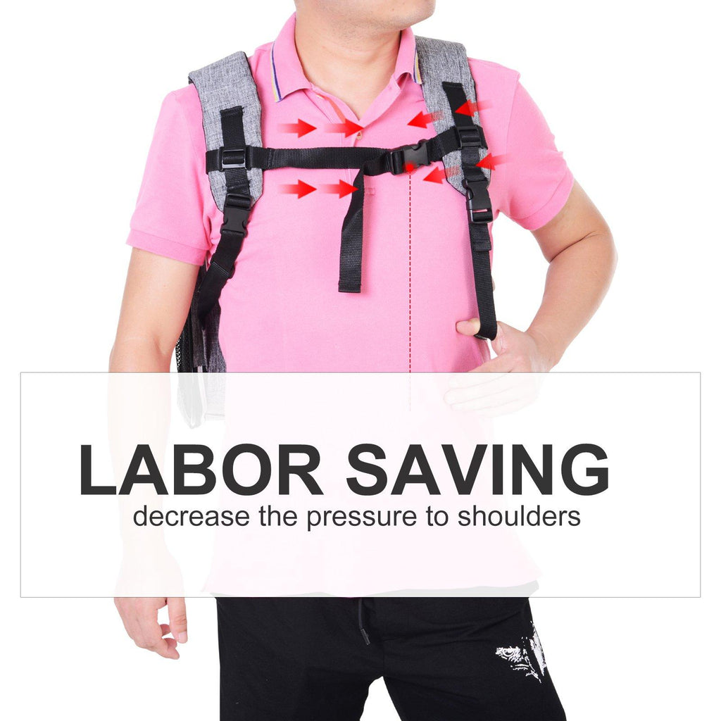 - Ne sollicite pas le dos : les sangles pectorales réduisent la pression sur les épaules.