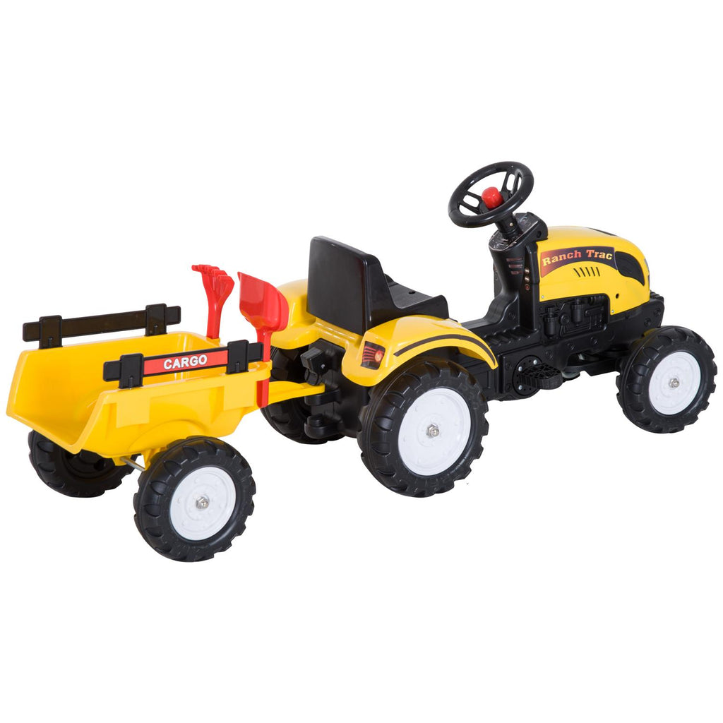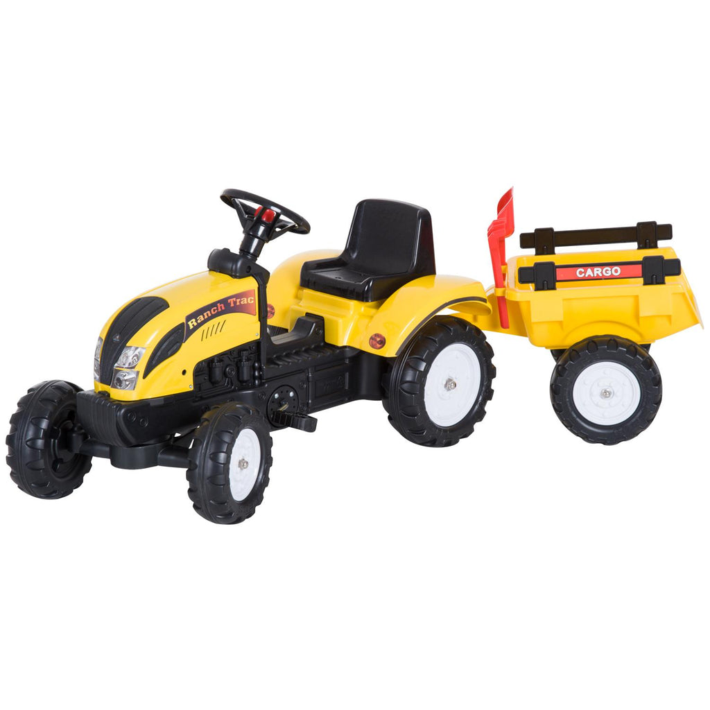 Tracteur à pédales avec remorque jaune et noire 123x42x51 cm