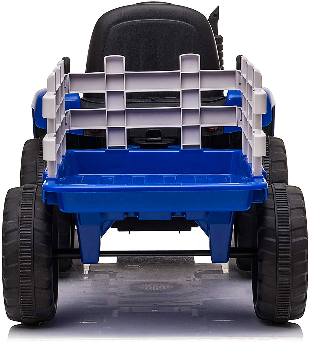Tracteur électrique pour enfants 12V avec remorque bleue