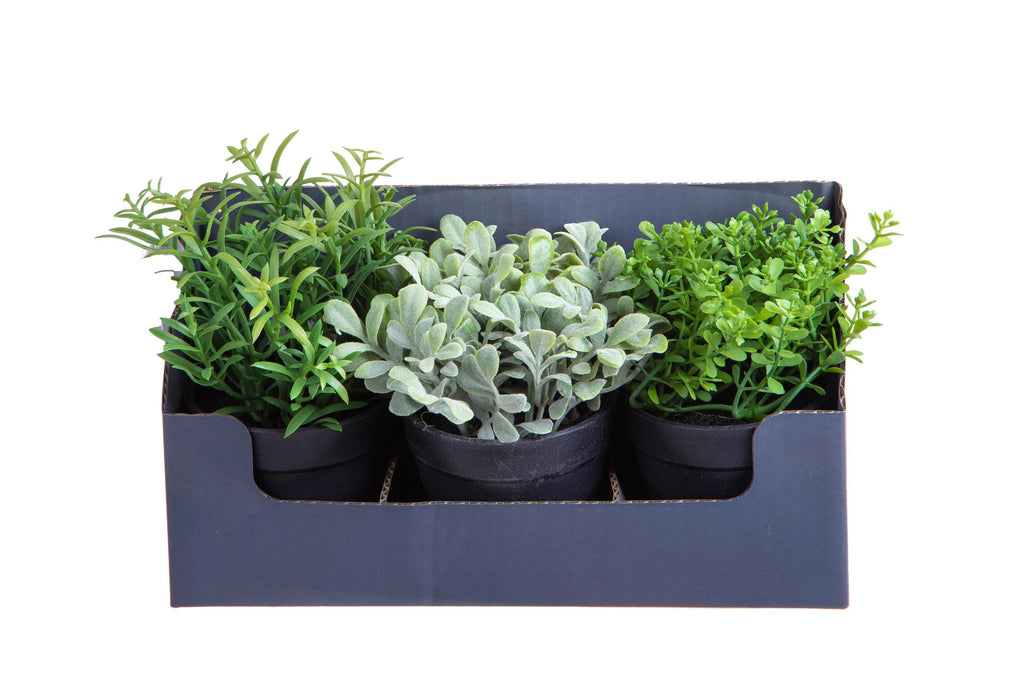 Set 2 Mini Plantes Aromatiques Artificielles 6 Pièces en Pot Assortis Hauteur 20 cm Vert