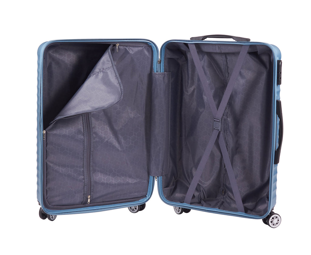 Set 3 Valigie Trolley Rigido 4 Ruote con Combinazione in ABS Ravizzoni Svezia Blu Acciaio