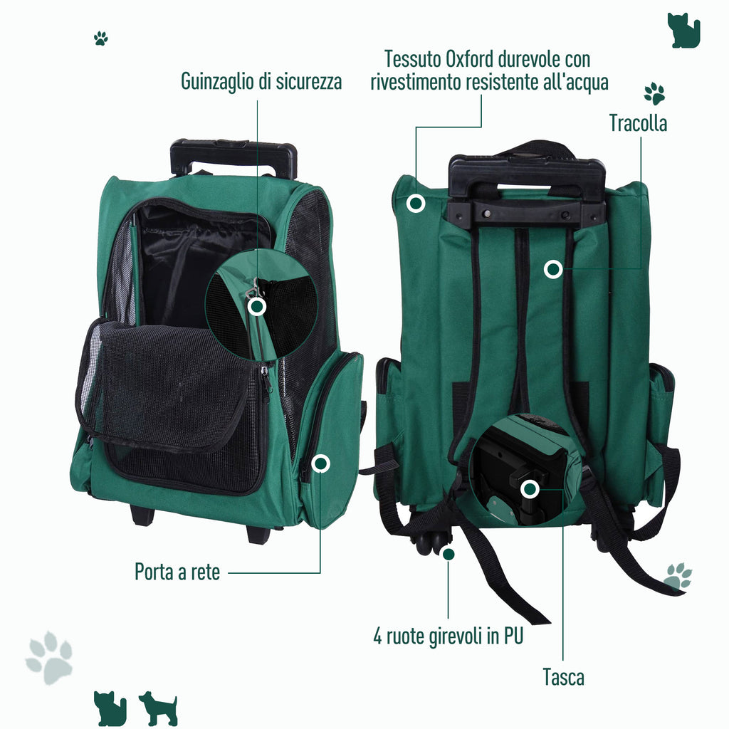 Sac à dos à roulettes 2 en 1 pour petits animaux 36x30x49 cm Vert