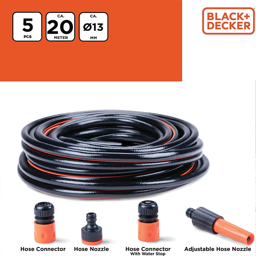 Tubo Pompa dell'Acqua da Giardino 20 Metri Ø13 con 5 Raccordi Max 6 Bar in PVC Black & Decker