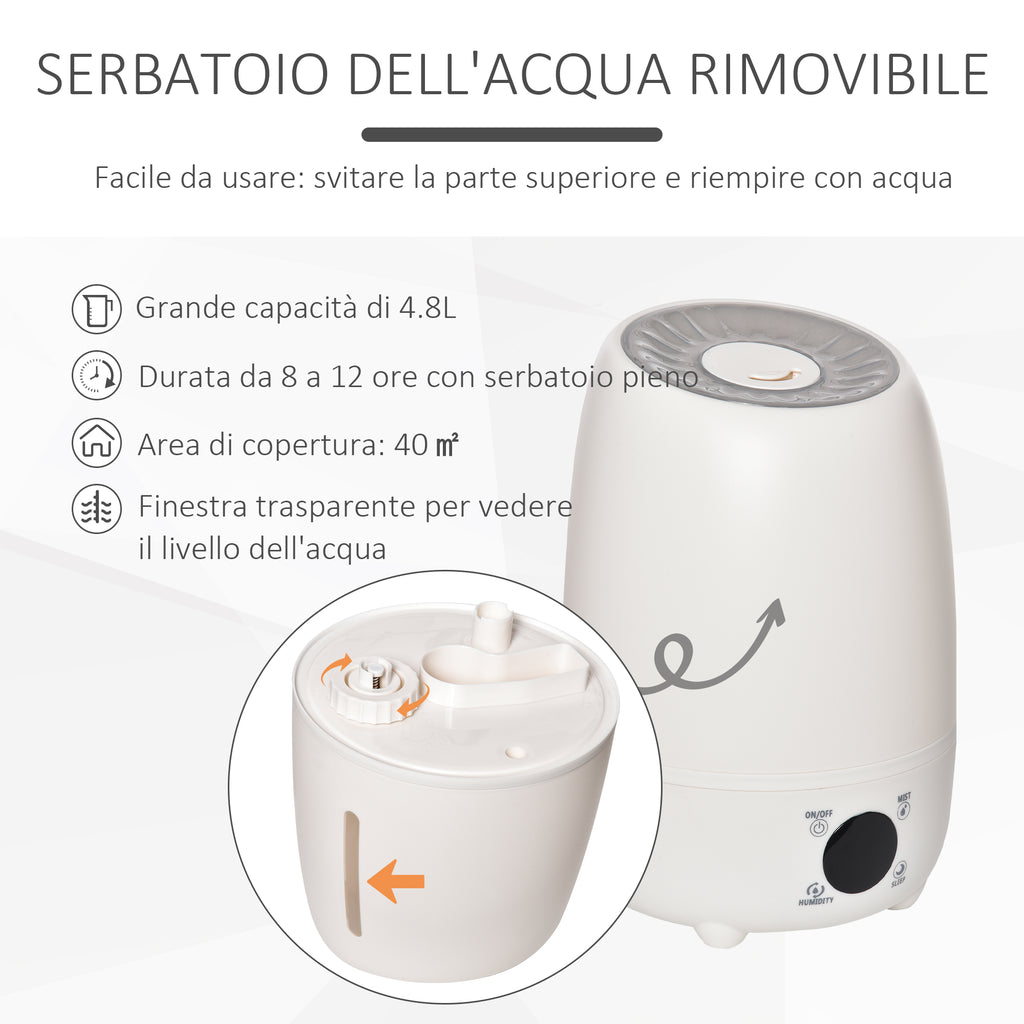 Humidificateur d'air à ultrasons de 4,8 L avec affichage LED blanc