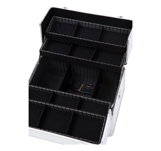 Valigetta Makeup per cosmetici professionale 36,5x24x29 cm in Alluminio e ABS Nero e Argento