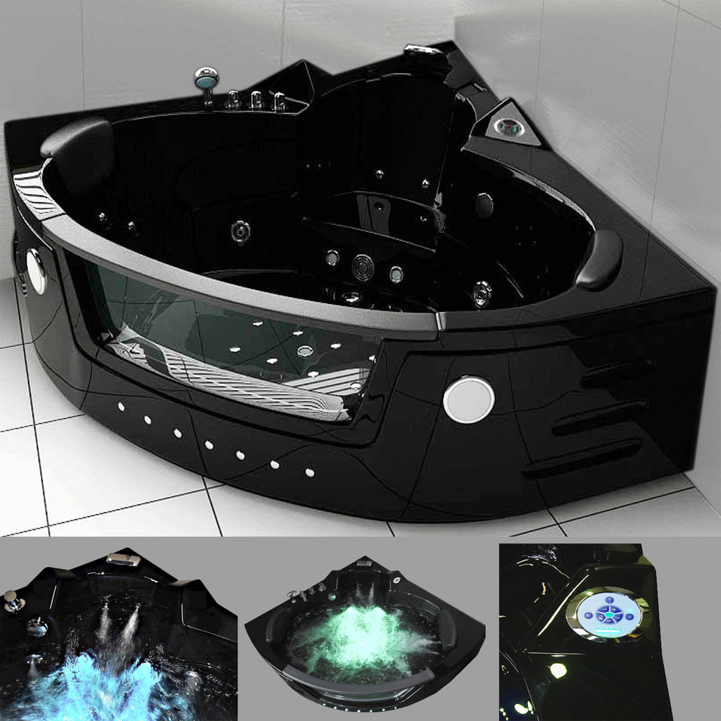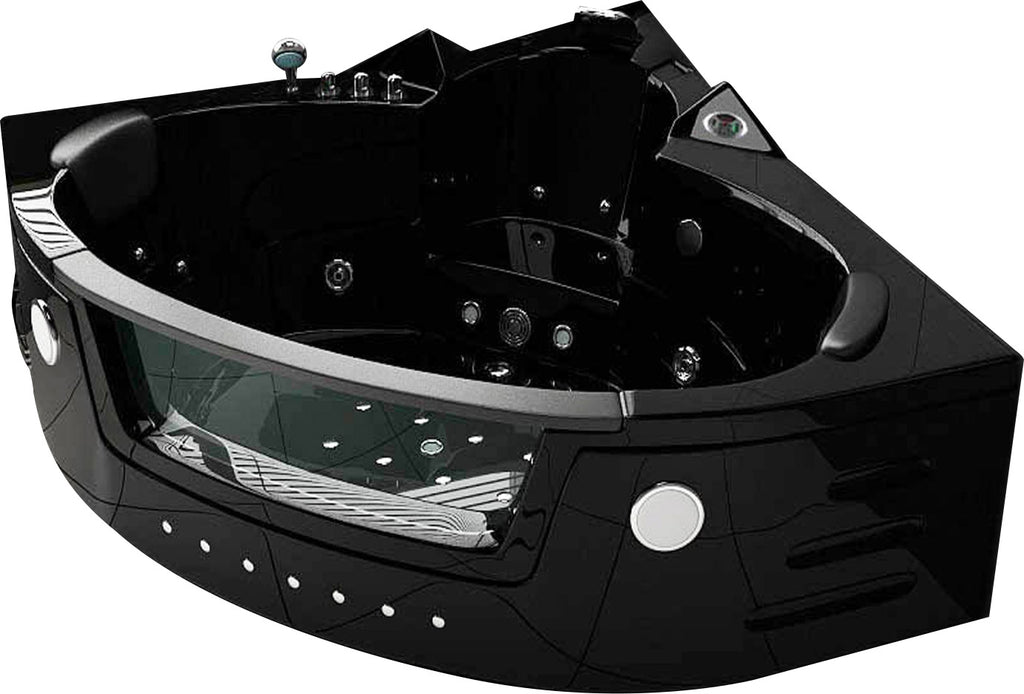 Baignoire d'hydromassage d'angle 150x150cm avec double pompe Carnelli Mykonos Noir