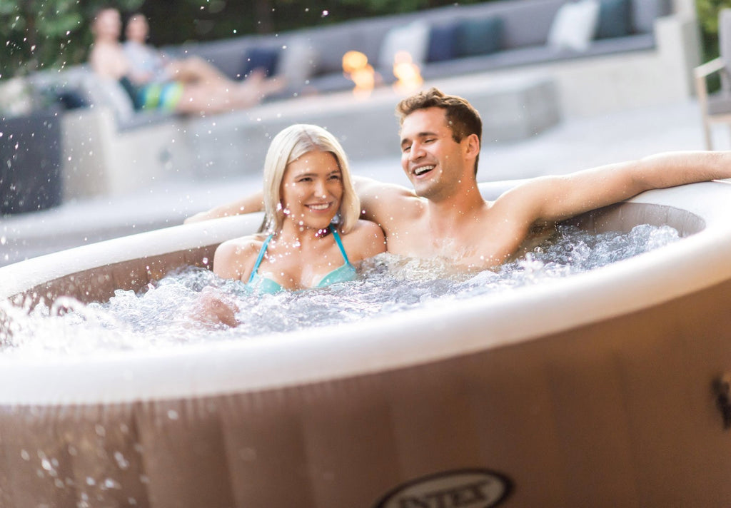 Baignoire à remous gonflable Intex 28426 d'un diamètre de 1,96 mètre équipée d'une pompe de chauffage et de traitement de l'eau, confortable, élégante et confortable, parfaite pour se détendre dans le jardin de la maison !