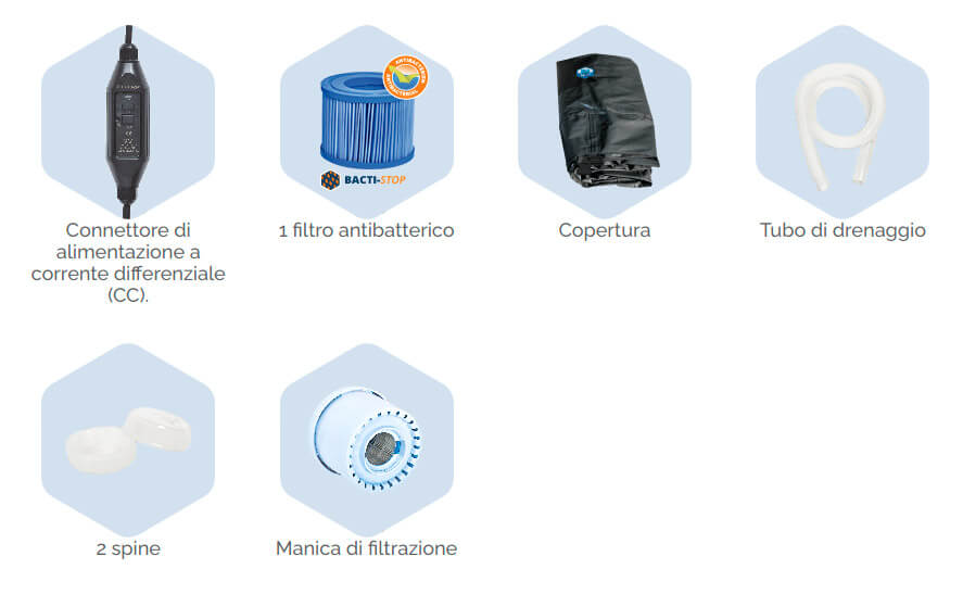 - Filtration : Ensemble bloc filtrant + 1 cartouche antibactérienne incluse