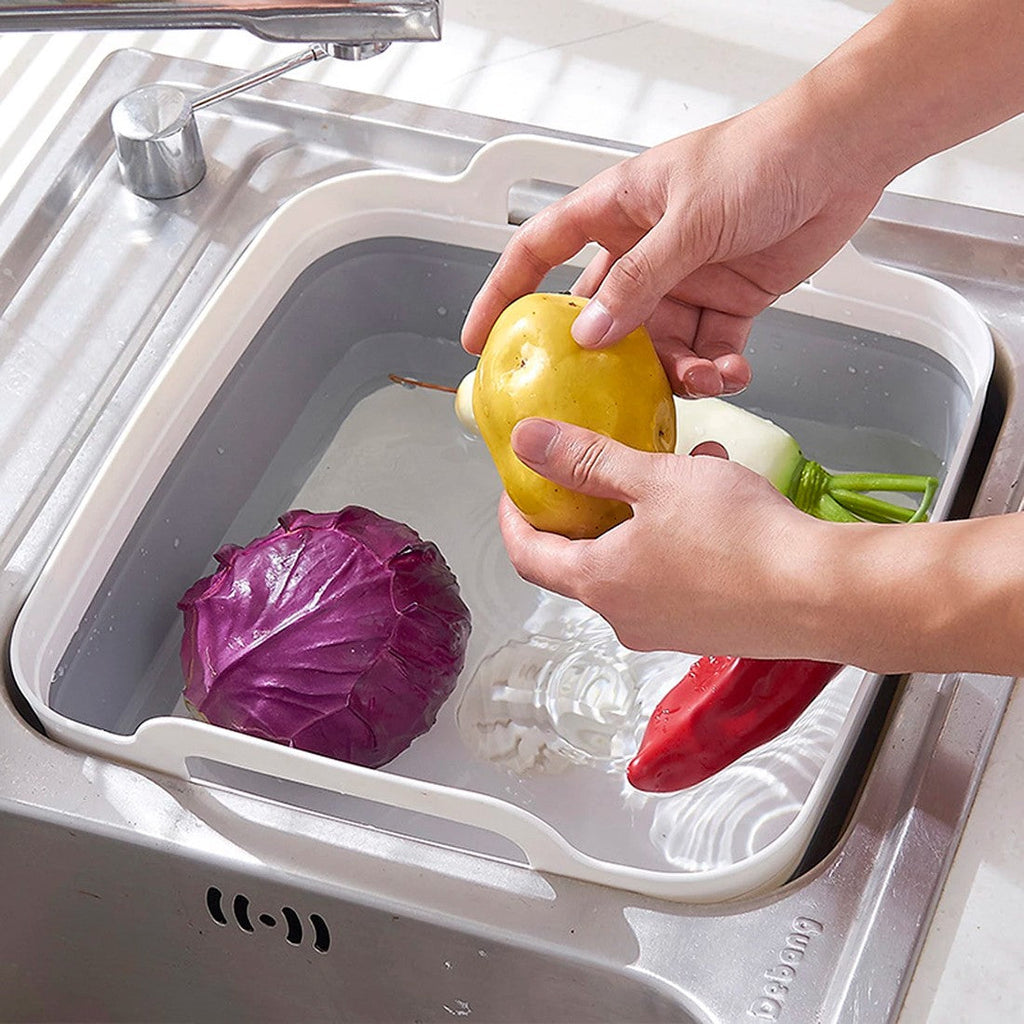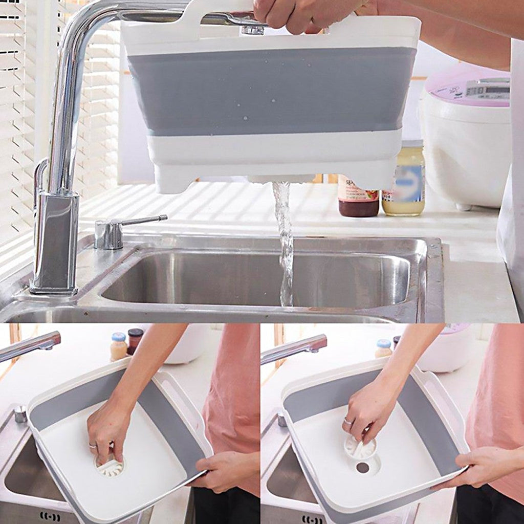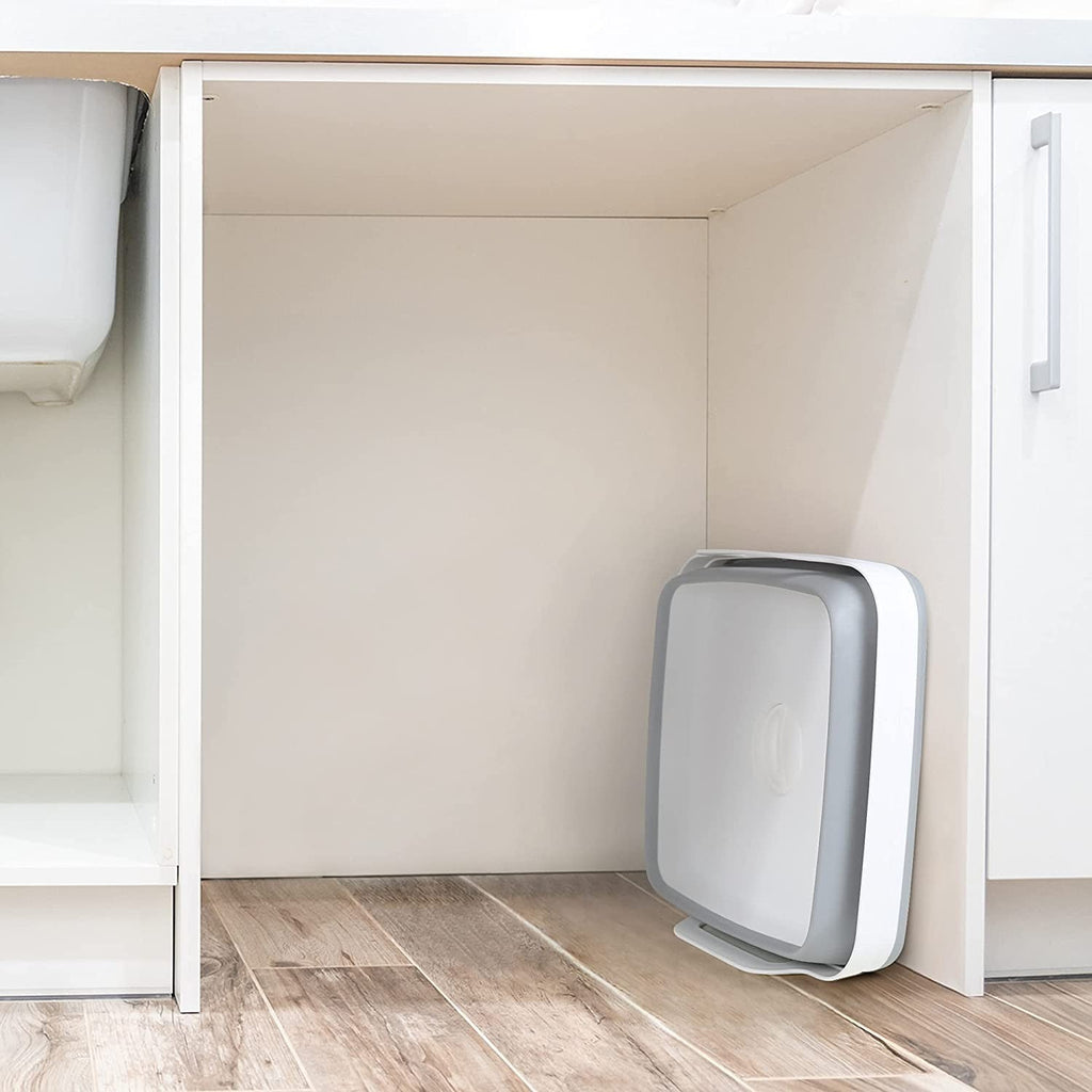 Plateau Lavabo Pliable Multifonctions 30,5x30 cm 9 Litres avec Bouchon de Vidange en Silicone Gris