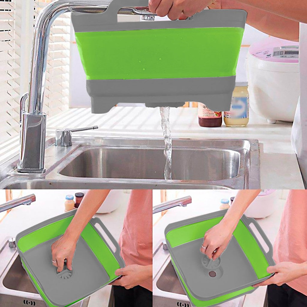 Le plateau de rangement pliable est fait de silicone et de plastique de haute qualité et durables. Polyvalent, léger et pratique à placer où vous voulez. Il se replie avec le système pop-up pour économiser de l'espace et est très pratique à agrandir et à plier.Le bassin est équipé d'un bouchon pratique avec filtre qui retient les résidus alimentaires, par la suite, le bouchon peut être facilement retiré pour jeter les résidus. . Idéal pour le camping, les voyages en caravanes, camping-cars et tentes.. Le panier est polyvalent, idéal dans la cuisine, la lessive, la salle de bain, etc. Utilisez le panier comme : bac à linge, dans l'évier pour laver les légumes, la glace ou comme rangement récipient.