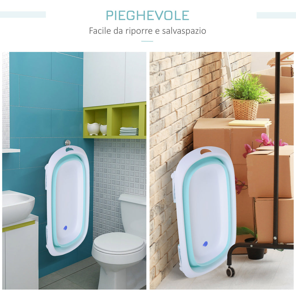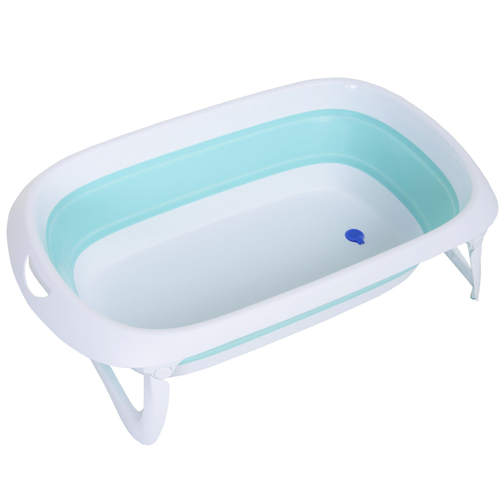 Baignoire bébé antidérapante pliable avec évacuation d'eau bleue