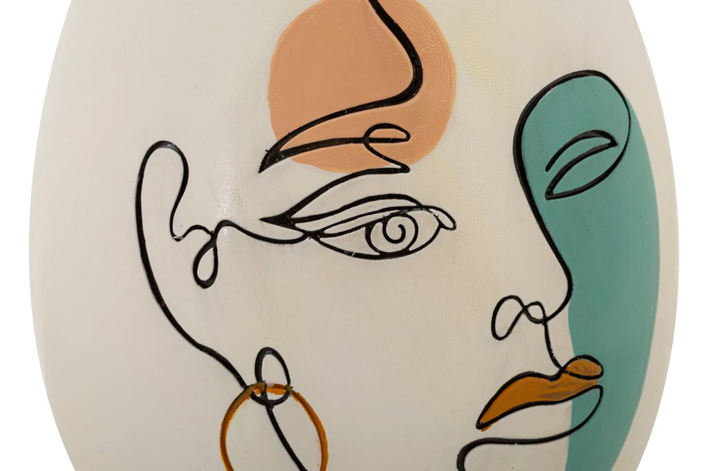 Ce vase enchante par son excellente finition et ses décorations détaillées. Sur sa surface se trouve un visage raffiné au design abstrait, qui capte l'attention par sa beauté mystérieuse. L'alliance de l'abstraction et de la délicatesse des détails crée un contraste fascinant, faisant de ce vase un véritable joyau de l'art décoratif. C'est une pièce unique, capable d'enrichir n'importe quel environnement avec son flair artistique.