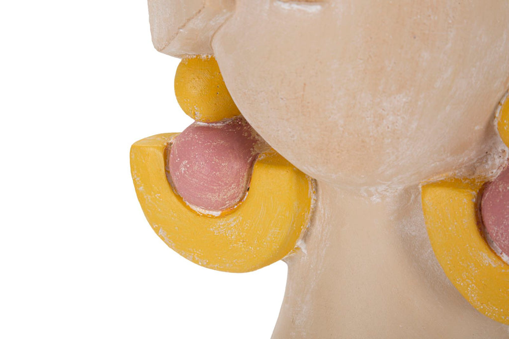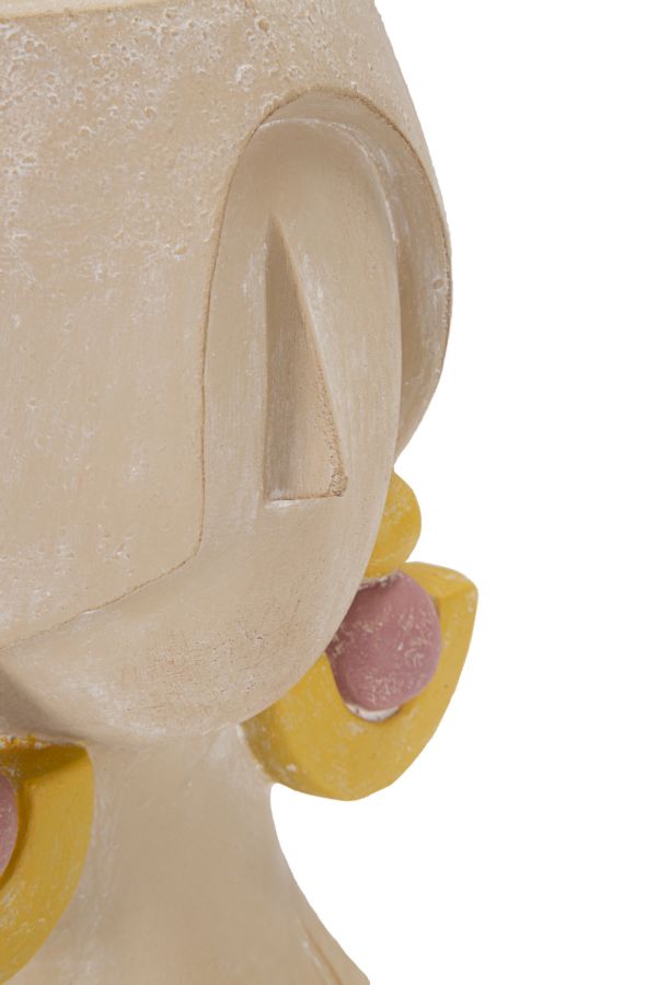 Ce vase est une merveille artistique qui représente le visage d'une femme dans un design qui rappelle le style du cubisme. Les traits géométriques et les lignes audacieuses du visage se combinent de manière unique, créant une composition fascinante. Les élégantes boucles d'oreilles colorées ajoutent de la vivacité à l'œuvre, donnant une touche de joie et d'originalité. Ce vase est certainement une création accrocheuse qui se distingue par son équilibre entre modernité et élégance.