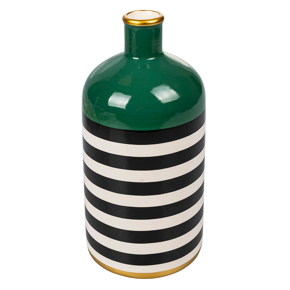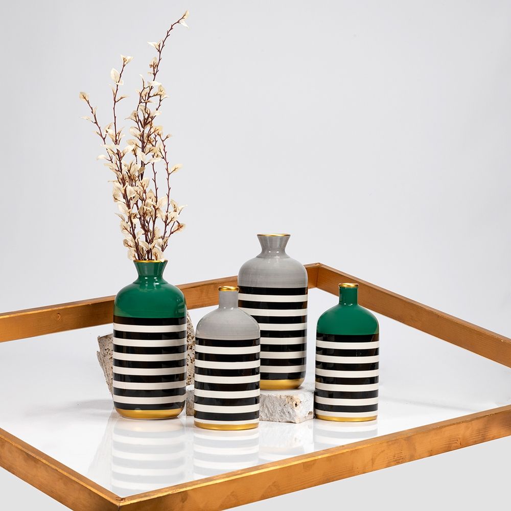 Luxury house è una linea di vasi arredo contemporanea. Nelle sue forme definite ed essenziali unisce colori solid e un decoro a righe bianche e nere. L'effetto visivo è affascinante e inaspettato e si completa con un dettagli oro che ci fanno sentire subito in un loft al centro di New York.