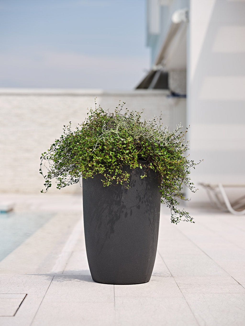 Vaso Meti sont des vases de forme conique, fabriqués en résine avec une surface mate, légèrement rugueuse au toucher, de qualité supérieure et au design moderne. Ce sont des vases produits avec une technologie de rotation, dont le processus de production prend plus d'une heure chacun, et sont ensuite finis à la main. Ils sont une solution idéale pour l'intérieur, mais aussi pour les terrasses et les jardins, grâce à leur résistance aux rayons UV et aux températures de -60°C à +80°C. Les matériaux utilisés et la technique de production garantissent résistance, solidité et souci du détail. Ce sont des vases légers, même dans les dimensions les plus importantes. Produit fabriqué en Italie .