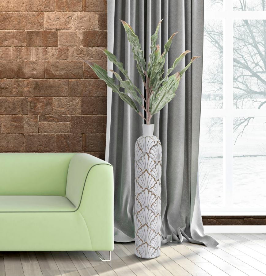Vase haut Panama 15,5x74x15,5 cm en polyrésine blanche