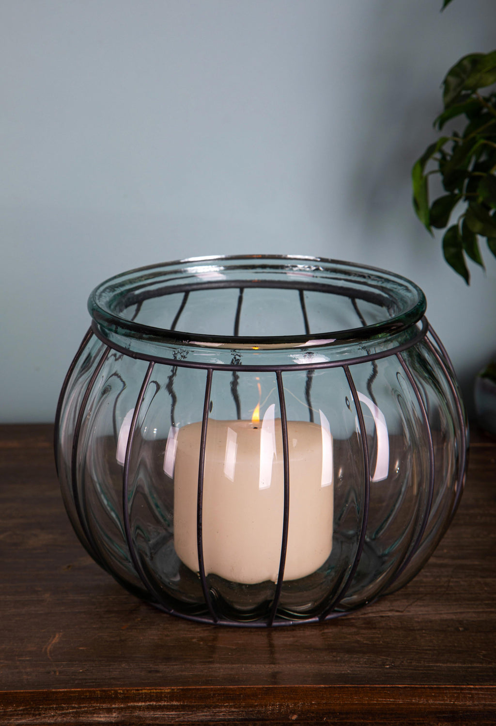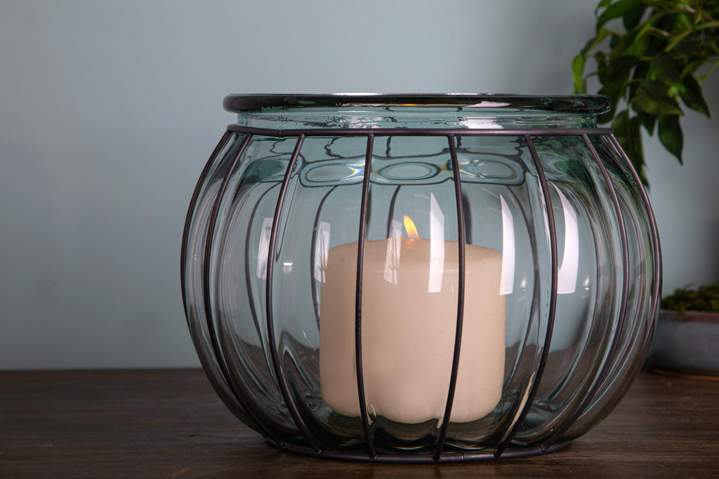 Vaso Porta Candela con Metallo 25 H 18 cm